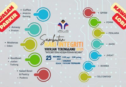 Yayasan Terengganu, 25 Nov 2025: Yayasan Terengganu telah mengadakan Sambutan Hari Integriti Tahun 2025 dalam suasana penuh berinformasi dan berfokus kepada pembudayaan nilai integriti dalam kalangan warga kerja serta masyarakat. Seramai lebih kurang 10 orang Kakitangan Yayasan Terengganu di SM Imtiaz YT Terengganu berpeluang untuk hadir ke majlis tersebut.