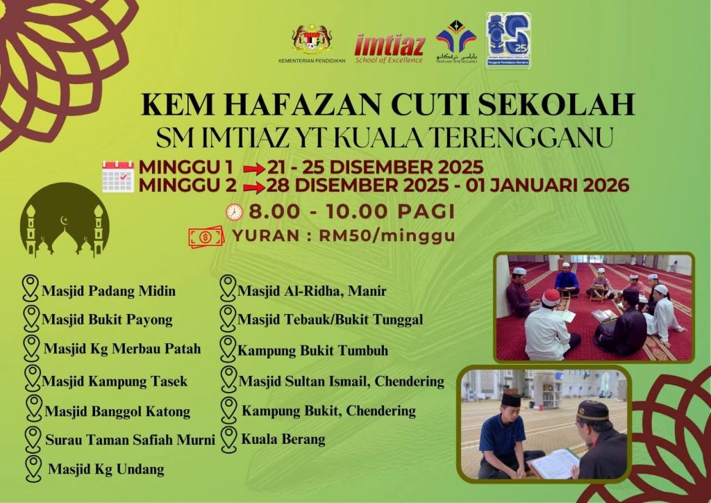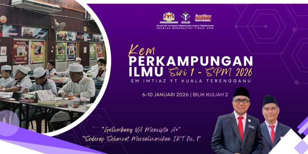 Ucapan TAHNIAH kepada semua calon SPM 2025 SM Imtiaz YT Kuala Terengganu yang telah menamatkan dengan jayanya kertas SPM pada hari ini 23 Disember 2025. Semua calon mengambil peluang untuk melakukan sujud syukur di dewan keramat Dewan AsSyatibi sebelum melangkah keluar dari dewan peperiksaan.