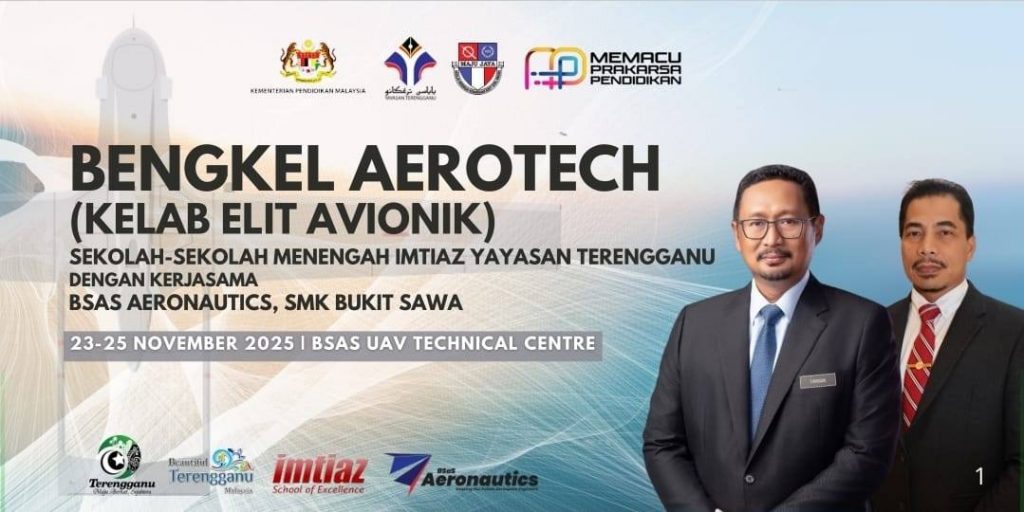 Marang, 23 – 25 Nov 2025: Seramai 6 orang pelajar Tingkatan 1 SM Imtiaz YT Kuala Terengganu telah menyertai Bengkel AeroTech (Kelab Elit Avionik) Sekolah-Sekolah Imtiaz Yayasan Terengganu tahun 2025. Bengkel tersebut telah berlangsung dengan jayanya selama 3 hari bertempat di BSaS Aeronautics, SMK Bukit Sawa, Marang, Terengganu.