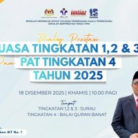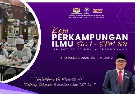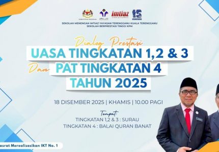 Ucapan TAHNIAH kepada semua calon SPM 2025 SM Imtiaz YT Kuala Terengganu yang telah menamatkan dengan jayanya kertas SPM pada hari ini 23 Disember 2025. Semua calon mengambil peluang untuk melakukan sujud syukur di dewan keramat Dewan AsSyatibi sebelum melangkah keluar dari dewan peperiksaan.