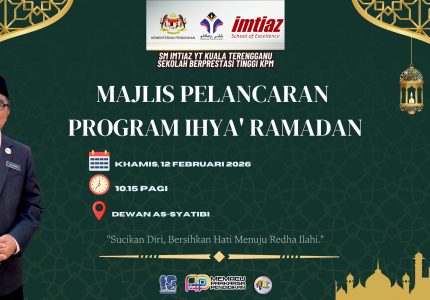 Kedatangan bulan Ramadan yang penuh berkat ini hendaklah disambut dan dihayati dengan amalan yang berfaedah. Semoga Program Ihya Ramadan yang akan dijalankan ini mendapat ganjaran yang besar di sisi Allah SWT. Semoga Ramadan kali ini menjadi tarbiyyah ruhiyyah dalam mendidik pelajar menjadi muslimin dan muslimat yang bertaqwa.