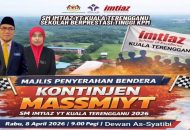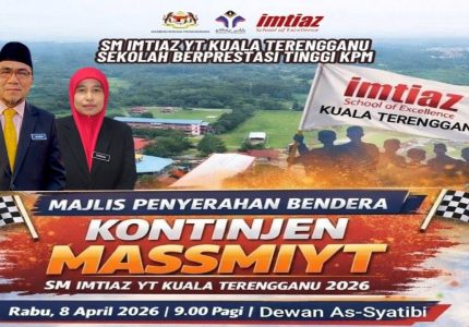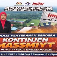 Ayahanda pengetua, Ustaz Md Imran telah menyempurnakan Majlis Penyerahan Bendera Kontinjen MASSMIYT di Dewan As-Syatibi sebagai simbolik pelepasan rasmi ke Kejohanan Sukan MASSMIYT 2026 yang berlangsung di Sek. Men. Imtiaz YT Kemaman bermula hari ini.