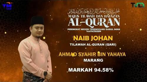 Majlis Daerah Setiu, Sungai Tarom, 30 Okt 2025: Kalungan tahniah diucapkan kepada Ustaz Ahmad Syahir Bin Yahaya atas pencapaian cemerlang merangkul gelaran Naib Johan dalam Majlis Tilawah Al-Quran Peringkat Negeri Terengganu Tahun 2025.