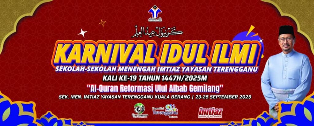 SM Imtiaz YT Kuala Berang, 25 Sept 2025: Karnival Idul Ilmi Sekolah-sekolah Menengah Imtiaz Yayasan Terengganu Kali Ke-19 telah diadakan di SM Imtiaz Yayasan Terengganu Kuala Berang selaku tuan rumah yang mana program ini telah berlangsung selama 3 hari bermula sejak 23 September 2025.